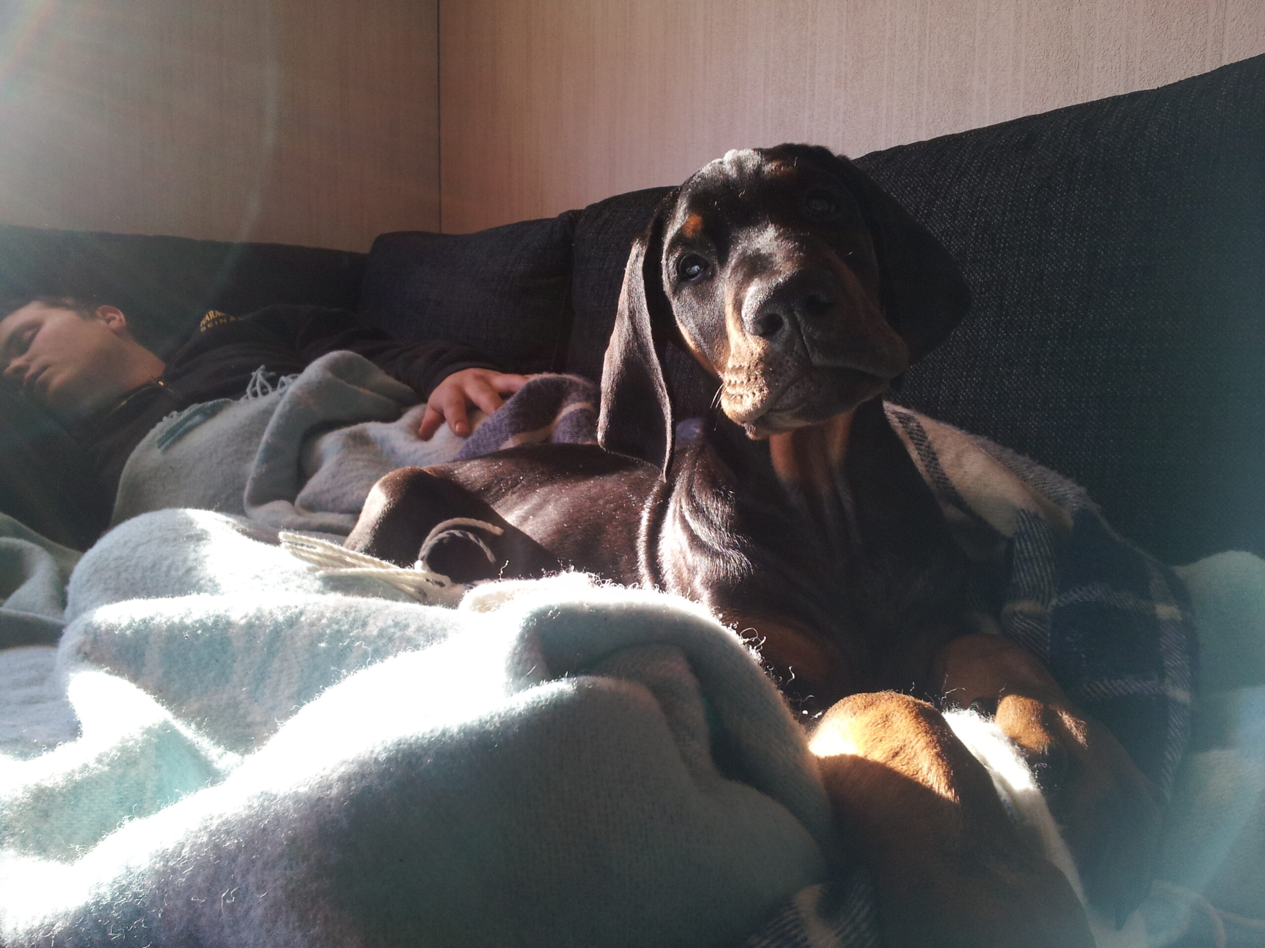 Koirani on reilun vuoden ikäinen dobermanni narttu. Sen energisyys, iloisuus saa oman pahanolon siirtymään...