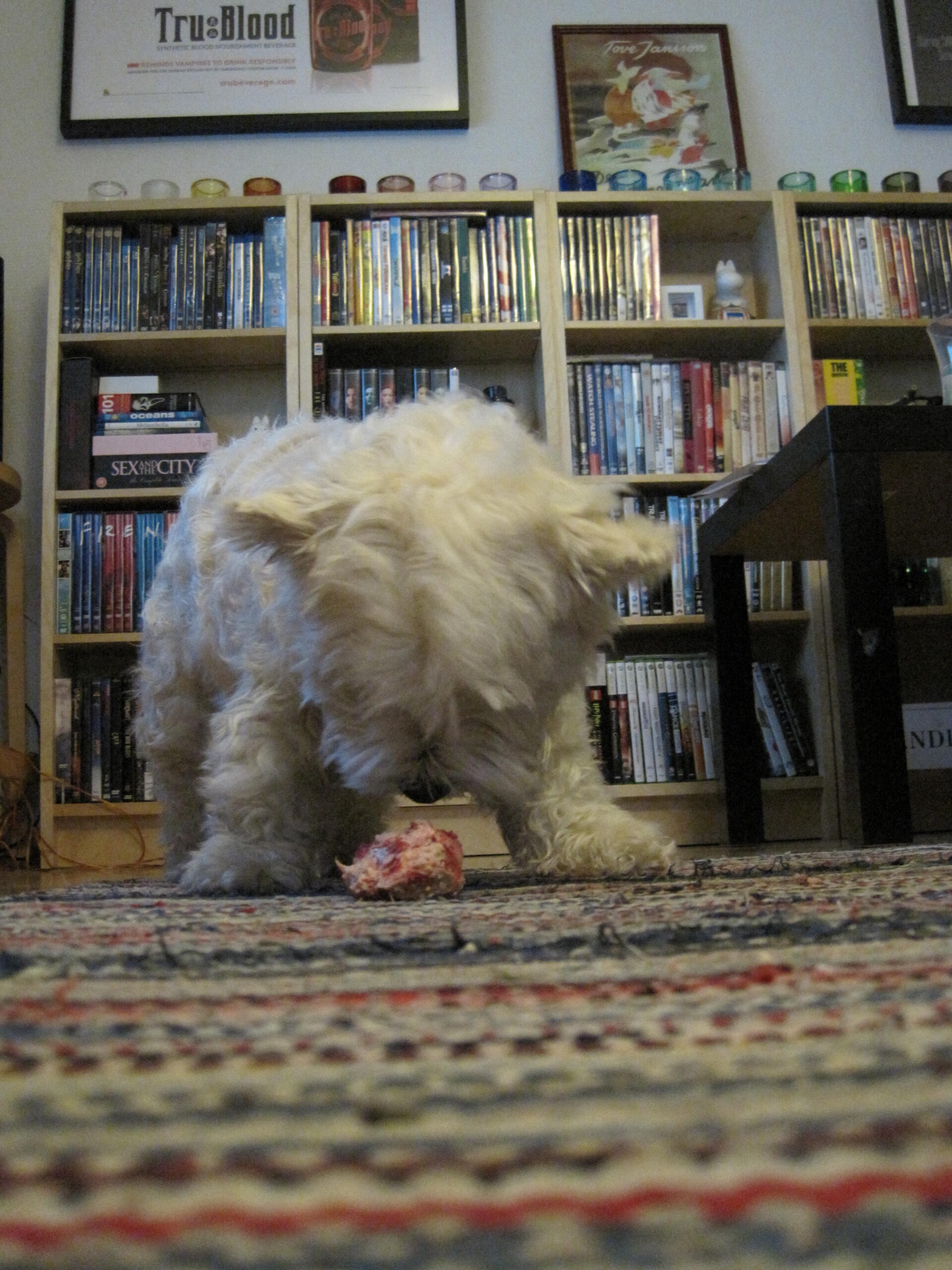 Chili on nyt 3-vuotias vilkas westie-tyttönen. Chili söi pennusta lähtien nappuloita, joita ehdin vaihtaa...