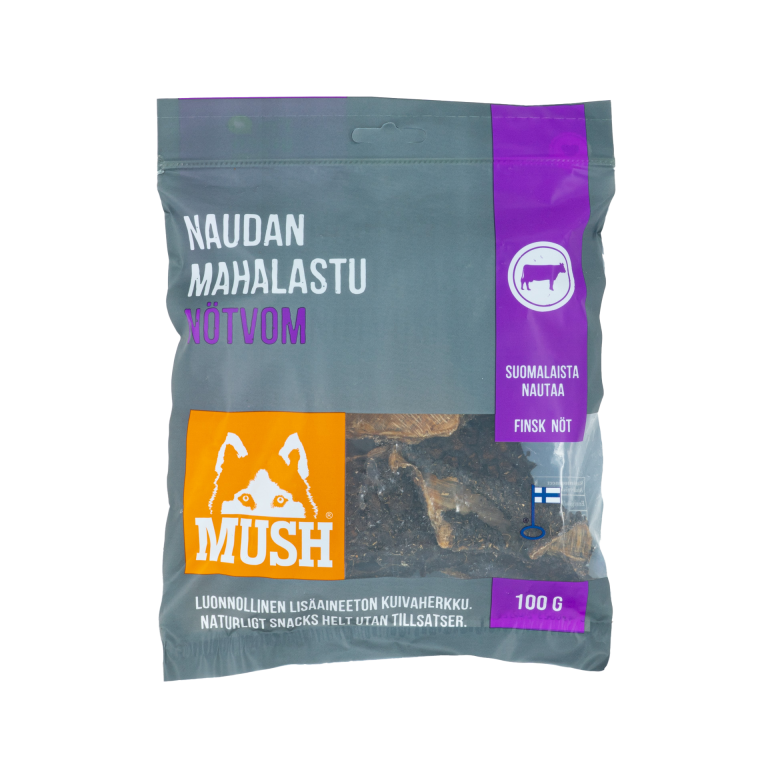Kotimainen kuivattu naudan mahalastu on ehdoton koirien herkku!