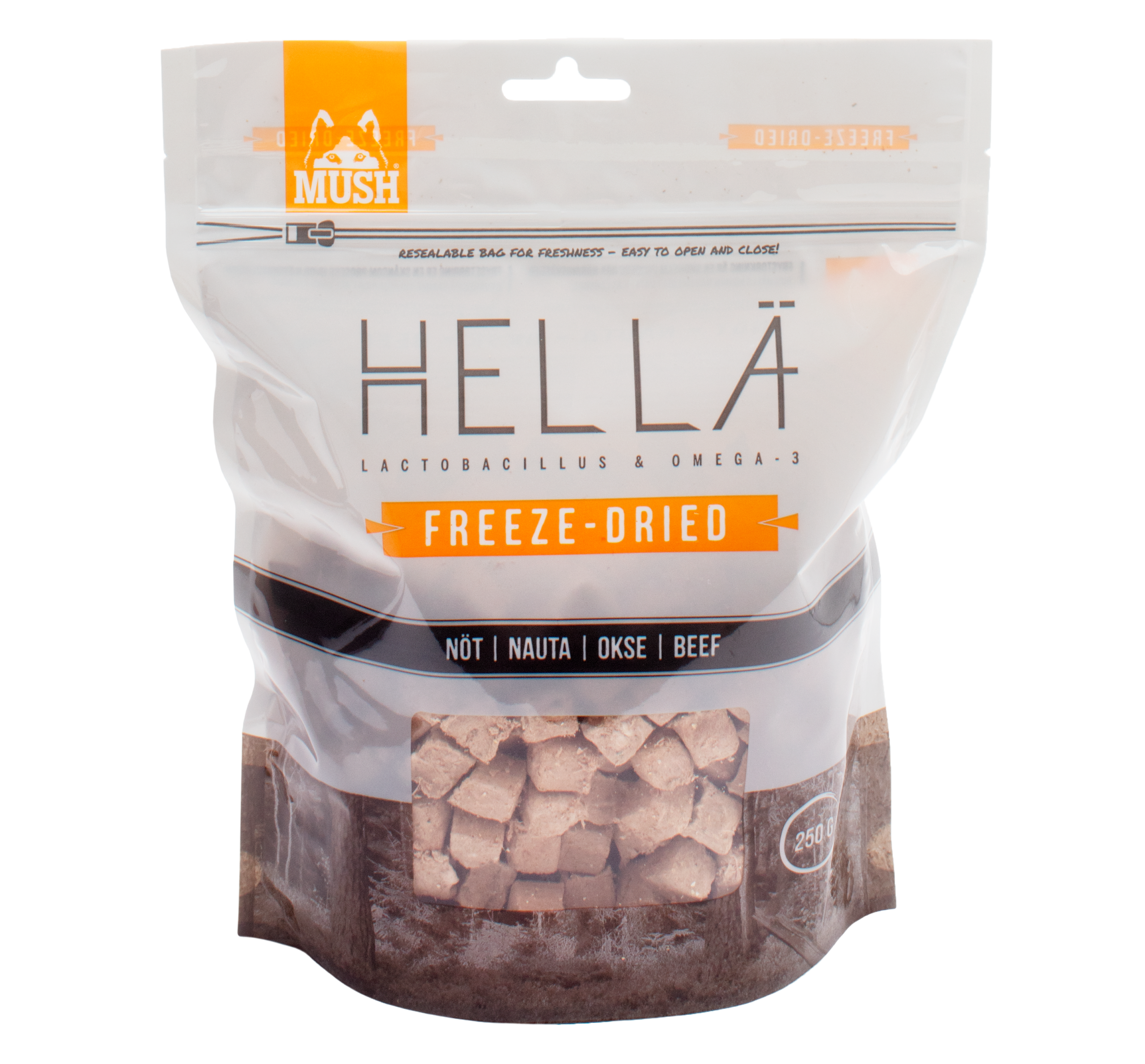 MUSH pakastekuivatut täysravinnot tarjoavat täsmälleen saman korkean ravintoarvon ja laadun kuin tuoreet vaihtoehtomme, mutta ovat kätevämpiä kuljettaa ja säilyttää. Säilöntämenetelmä säilyttää vitamiinit, entsyymit ja proteiinit, samalla kun ruoan maku ja ravintoarvot pysyvät erinomaisina. 100% luonnolliset ja viljattomat ateriat tarjoavat koirallesi ravitsevaa ruokaa ilman lisä- ja säilöntäaineita – missä tahansa.